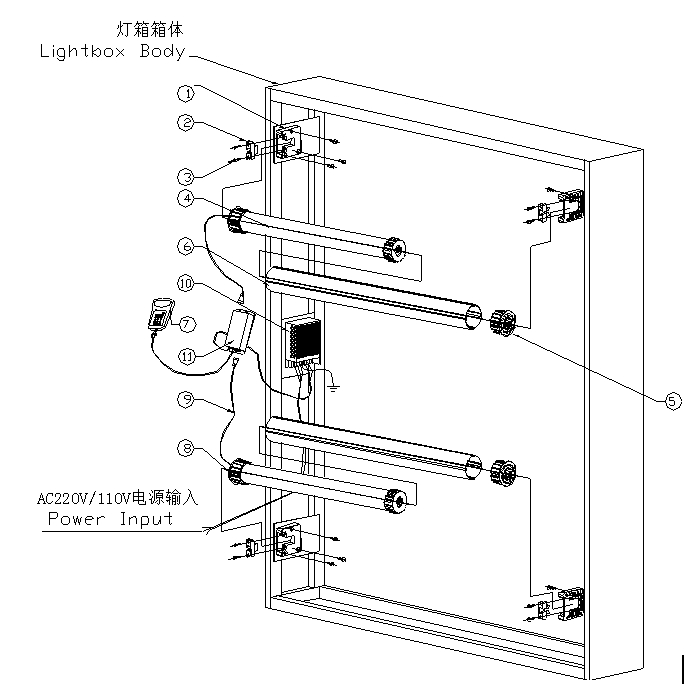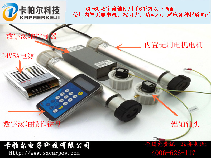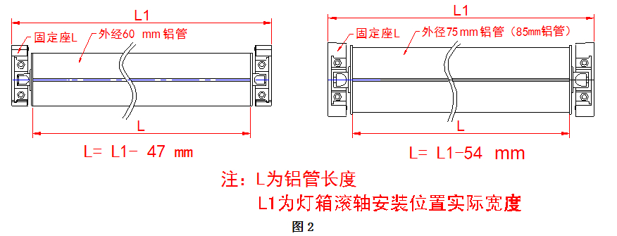 产品主要技术参数 ·系统尺寸:¢60×500mm,系统铝管允许最短长度为530mm; ·使用灯箱画布极限尺寸:详见“第三章、海报制作与安装”中的表2介绍; ·电源要求:AC110V或 220V转DC 24V/3A或DC 24V/3A; ·系统额定功率:60W; ·系统实际工作功率:40W ·运行速度:45cm/S~55cm/S,系统电机转速:150转/分钟 ·包装尺寸:585mm(长)*245mm(宽)*135mm(高), 毛重:6.2KG 二、滚轴安装 1、打开包装箱,检查实际装箱的物品是否与装箱单相符